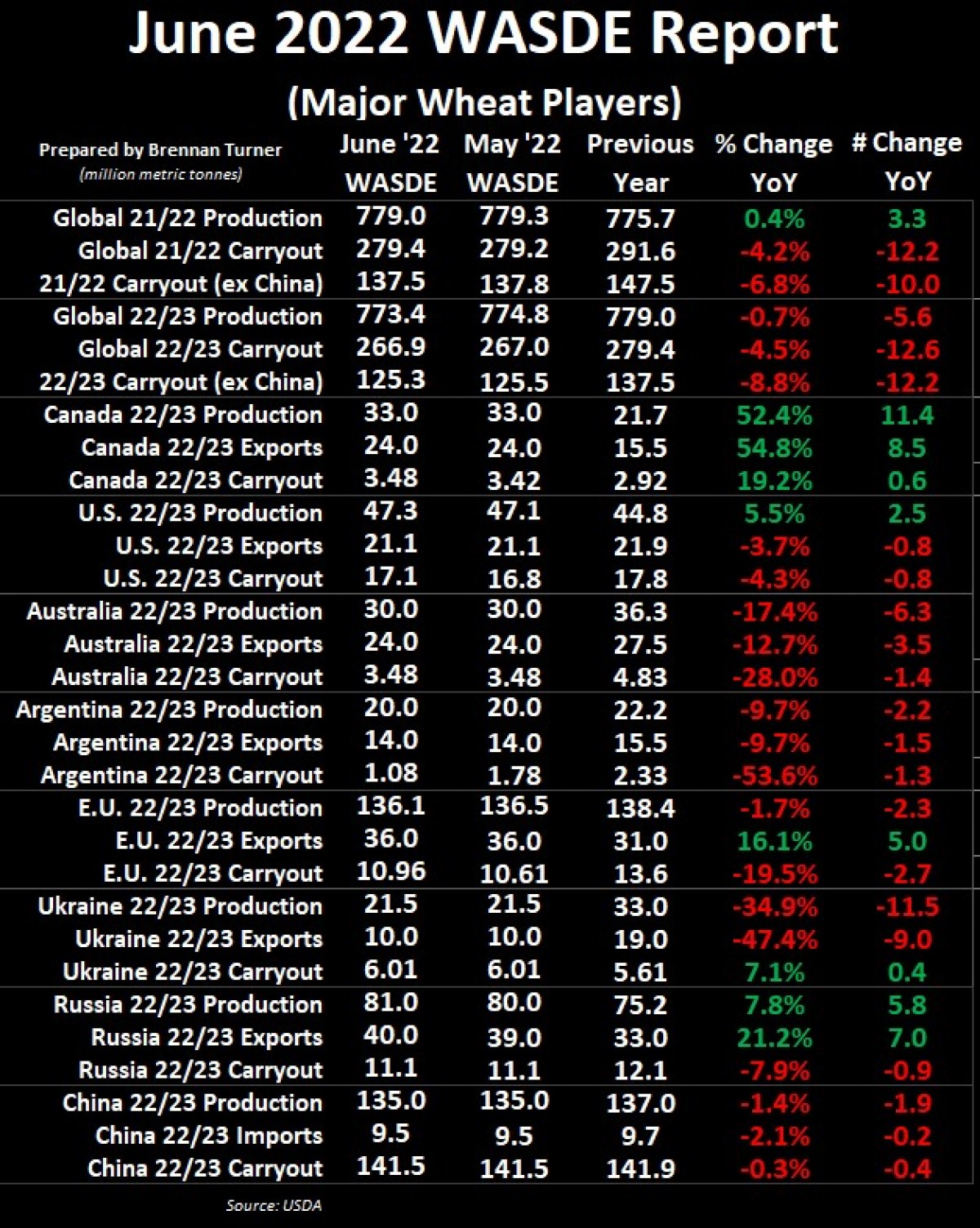Before digging into this month’s WASDE – which didn’t provide too many surprises – negotiations continue for getting available Ukrainian grain out of country and alleviate accelerating food crises concerns. In my opinion, as well as that of many other analysts, it’s unlikely that anything will get moving soon, namely because Russia wants some sanctions lifted and no one expects world governments to capitulate, given the atrocities committed thus far in Ukraine. However, Singapore-based trader, Olam, believes that if negotiations are successful, there could be 8 – 11 MMT of wheat added to Ukraine’s 2022/23 new crop wheat export program.