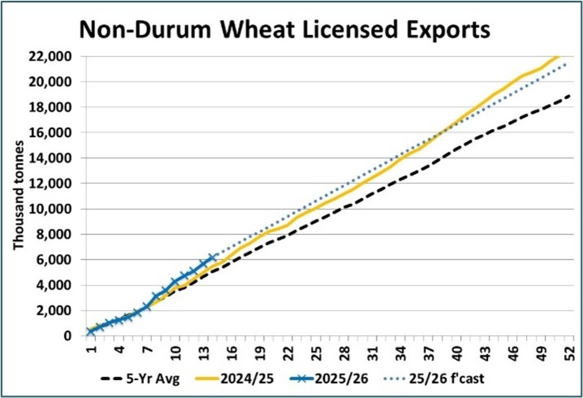 - Shipments of durum from country elevators so far in 2025/26 are running ahead of last year.