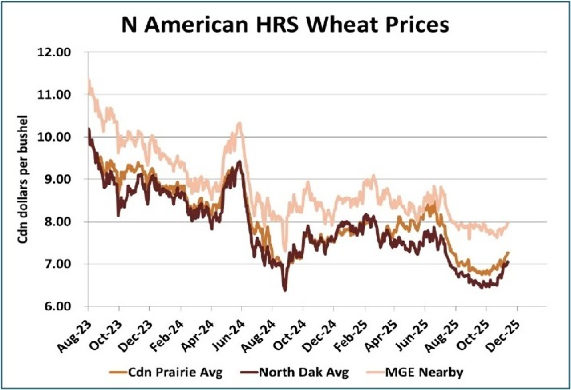 - Global durum stocks are more comfortable in 2025/26, which has resulted in a limited response in bids despite solid Canadian export movement so far. Even with some quality concerns, there’s plenty of 1-3 CWAD to meet export demand.